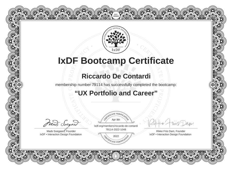 Riccardo De Contardi's Bootcamp Certificate: UX Portfolio and Career