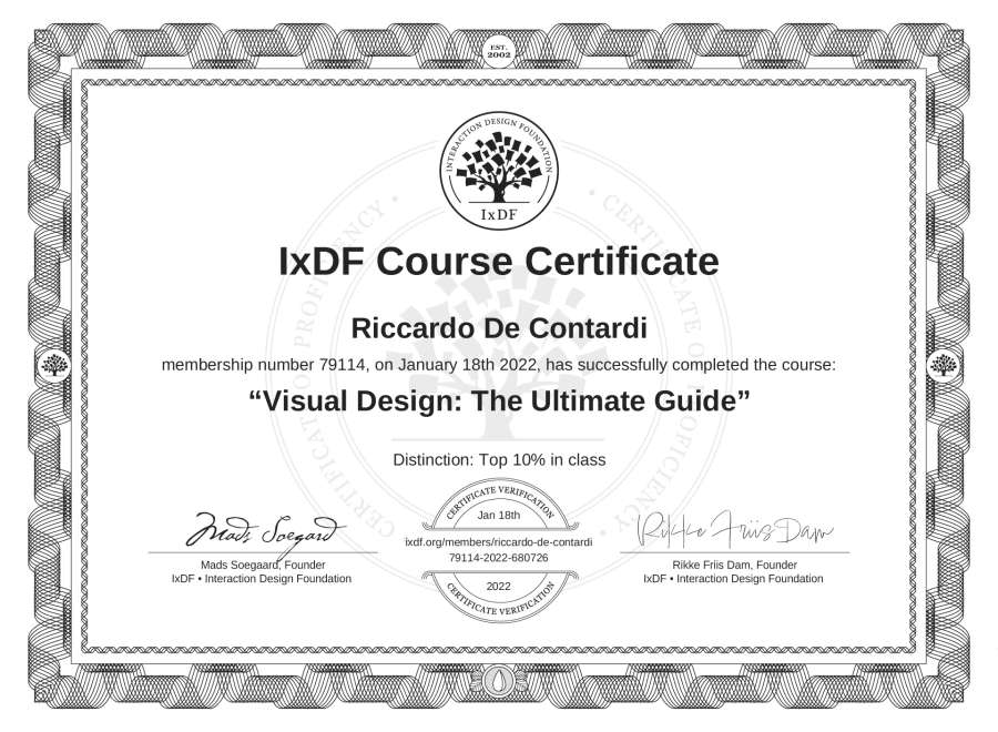 Riccardo De Contardi's IxDF Course Certificate: Visual Design: The Ultimate Guide