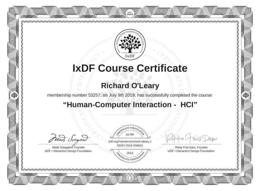 Richard O'Leary's IxDF Course Certificate: Human-Computer Interaction - HCI