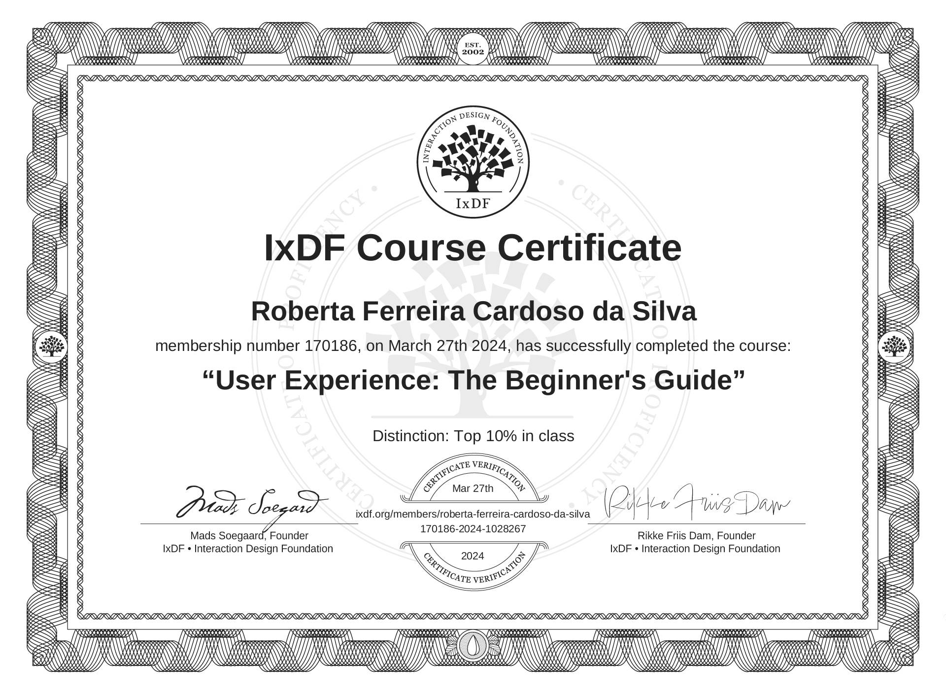 Roberta Ferreira Cardoso da Silva's IxDF Course Certificate: User Experience: The Beginner's Guide
