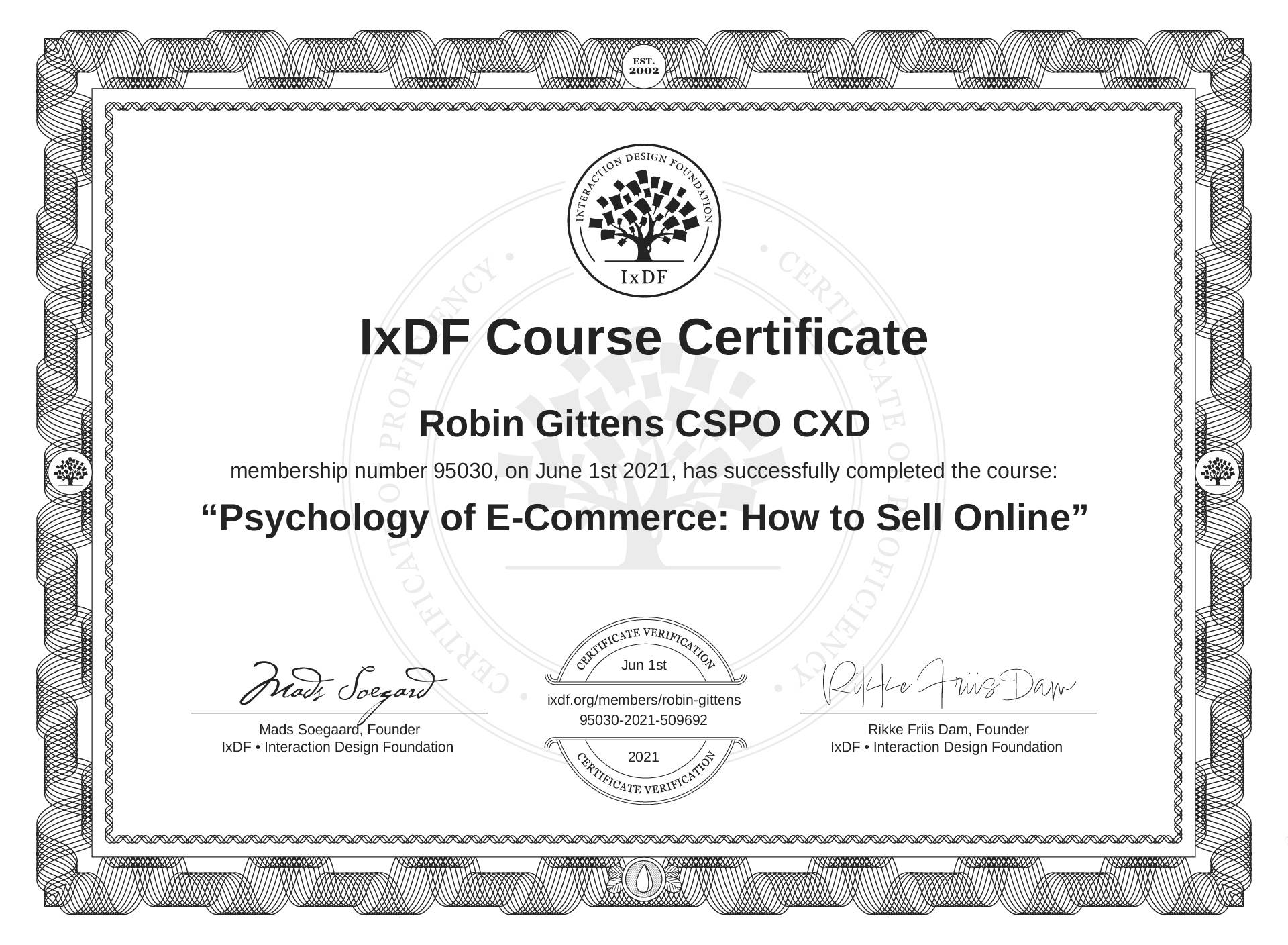 Robin Gittens CSPO CXD's IxDF Course Certificate: Psychology of E-Commerce: How to Sell Online