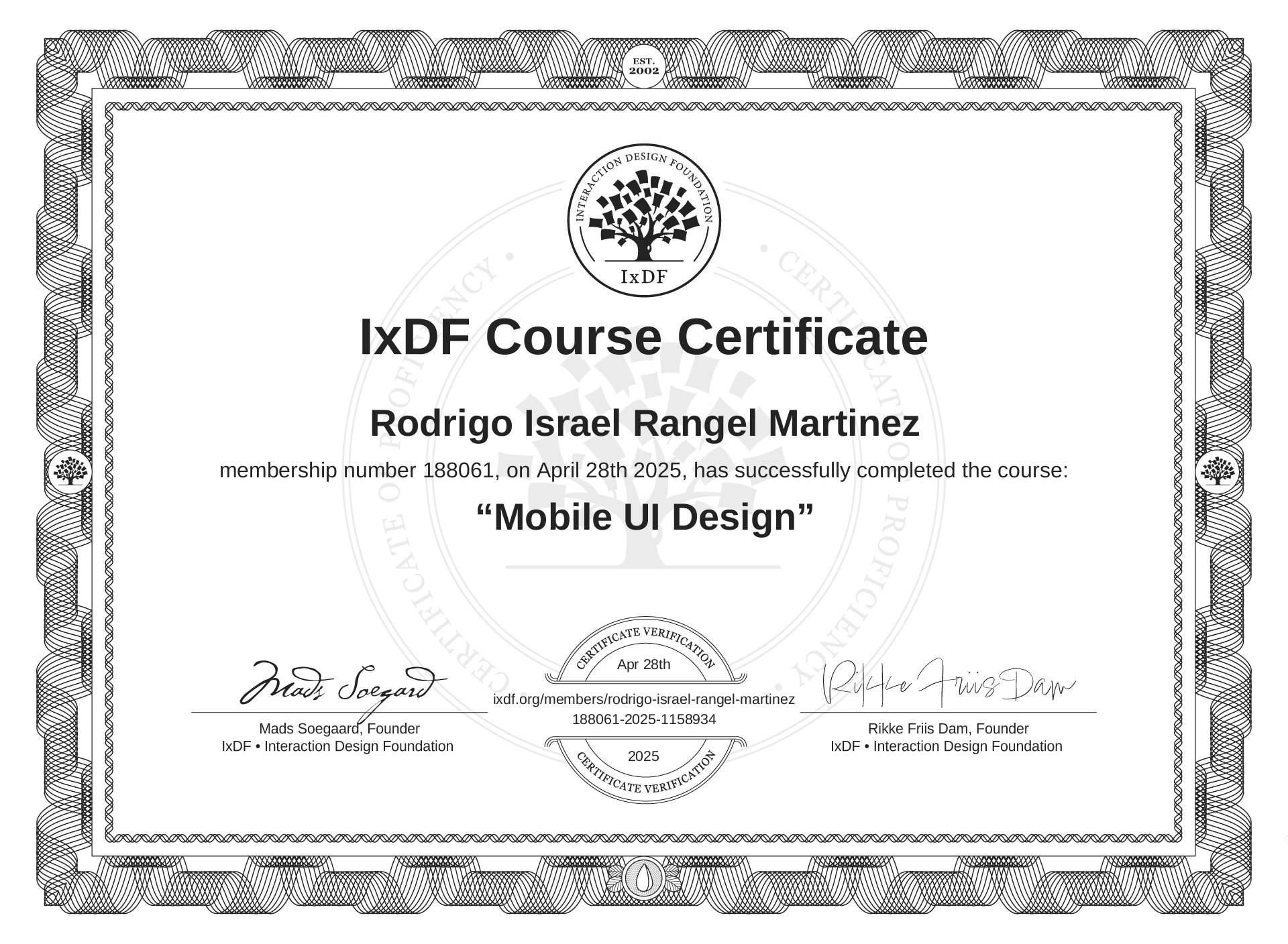 Rodrigo Israel Rangel Martinez's IxDF Course Certificate: Mobile UI Design
