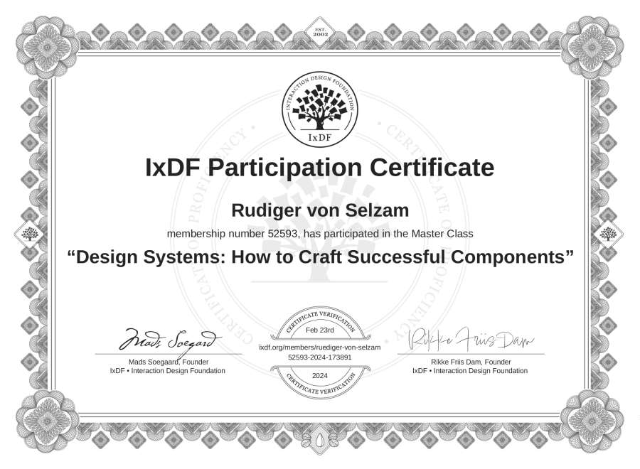 Rüdiger von Selzam's IxDF Masterclass Certificate: Design Systems: How to Craft Successful Components