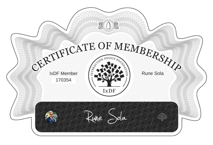 Rune Sola: IxDF Membership Certificate