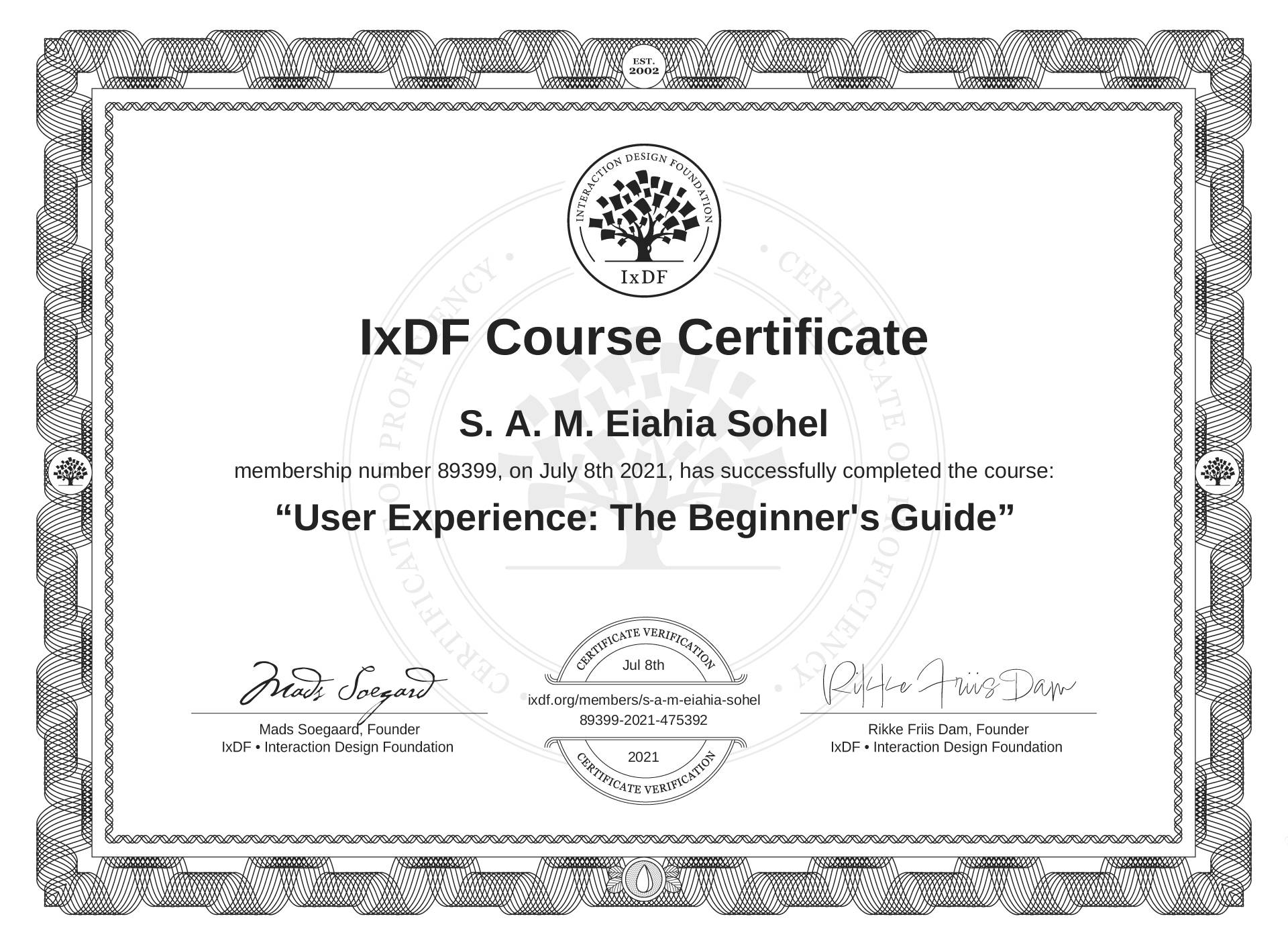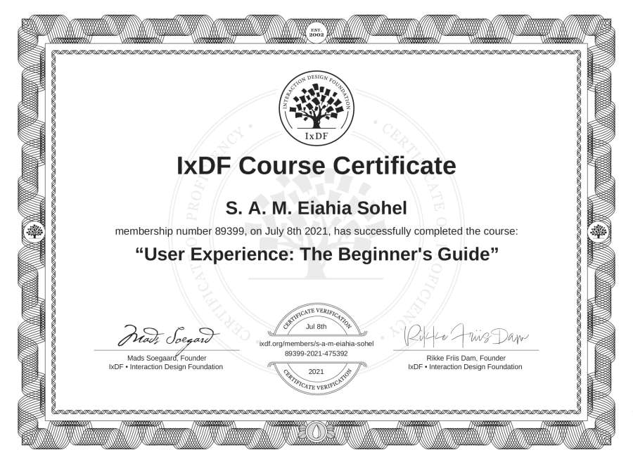 S. A. M. Eiahia Sohel's IxDF Course Certificate: User Experience: The Beginner's Guide