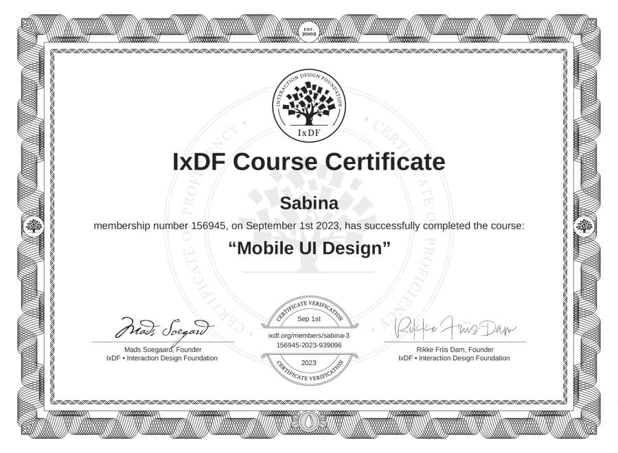 Sabina's IxDF Course Certificate: Mobile UI Design