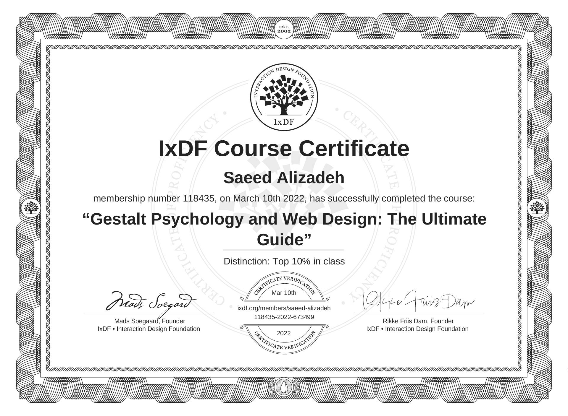 Saeed Alizadeh's IxDF Course Certificate: Gestalt Psychology and Web Design: The Ultimate Guide