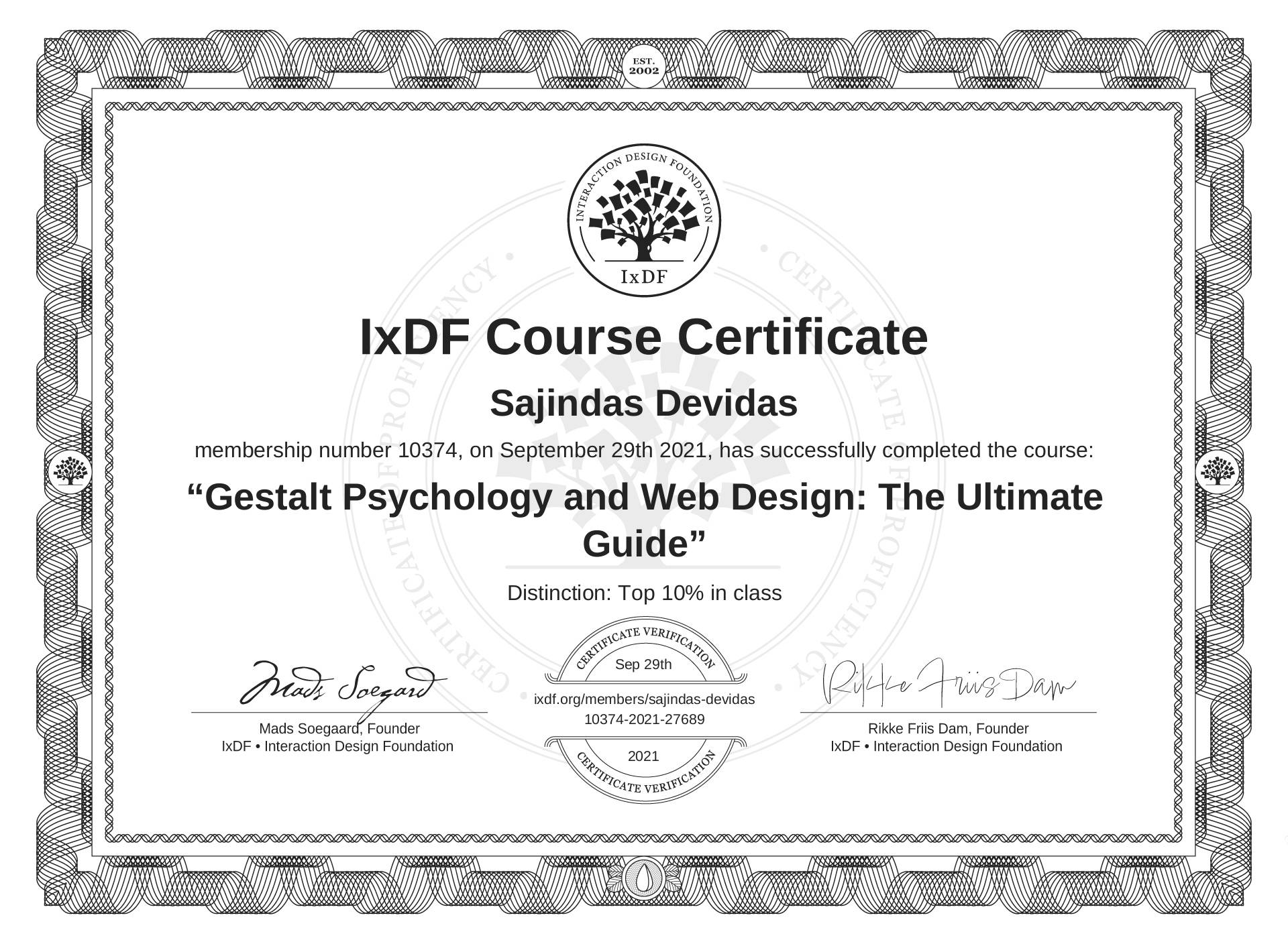 Sajindas Devidas's IxDF Course Certificate: Gestalt Psychology and Web Design: The Ultimate Guide