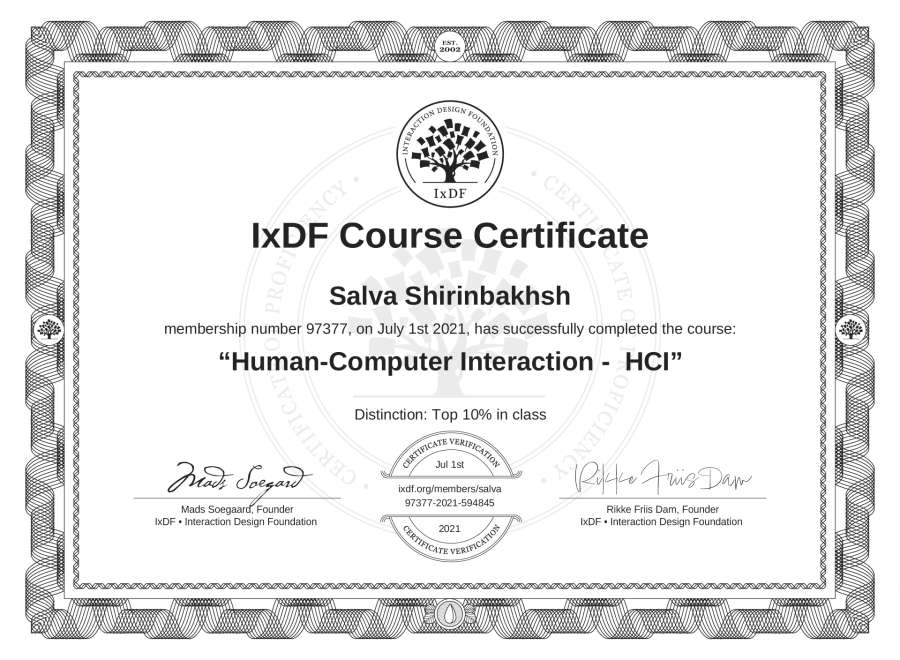 Salva Shirinbakhsh's IxDF Course Certificate: Human-Computer Interaction - HCI