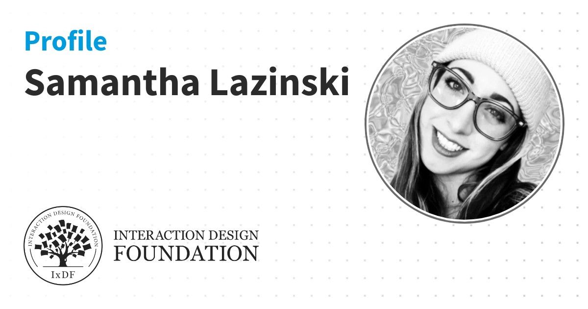 IxDF Course Certificates are awarded to Samantha Lazinski in formal recognition of their coursework surpassing the rigorous benchmarks of exceptional performance established by the IxDF Educational Codex.