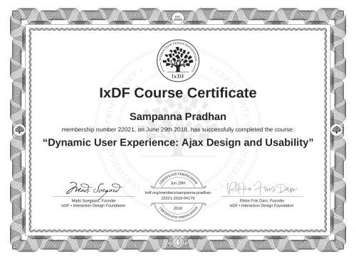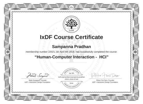 This IxDF Membership Certificate is issued to Sampanna Pradhan in formal recognition of their membership of the IxDF, global leader in design education.