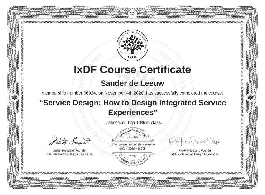 Sander de Leeuw's IxDF Course Certificate: Service Design: How to Design Integrated Service Experiences