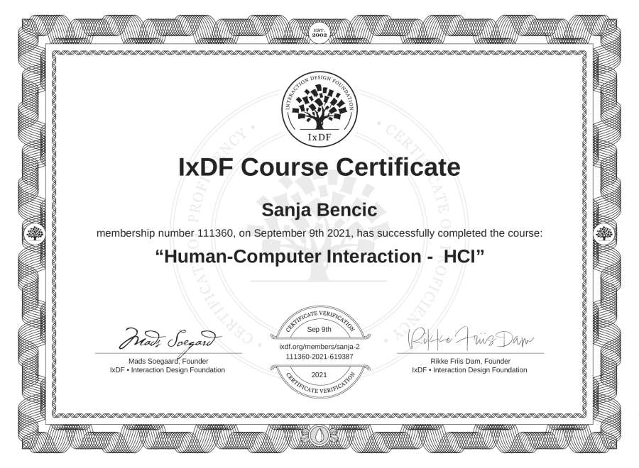 Sanja Benčić's IxDF Course Certificate: Human-Computer Interaction - HCI