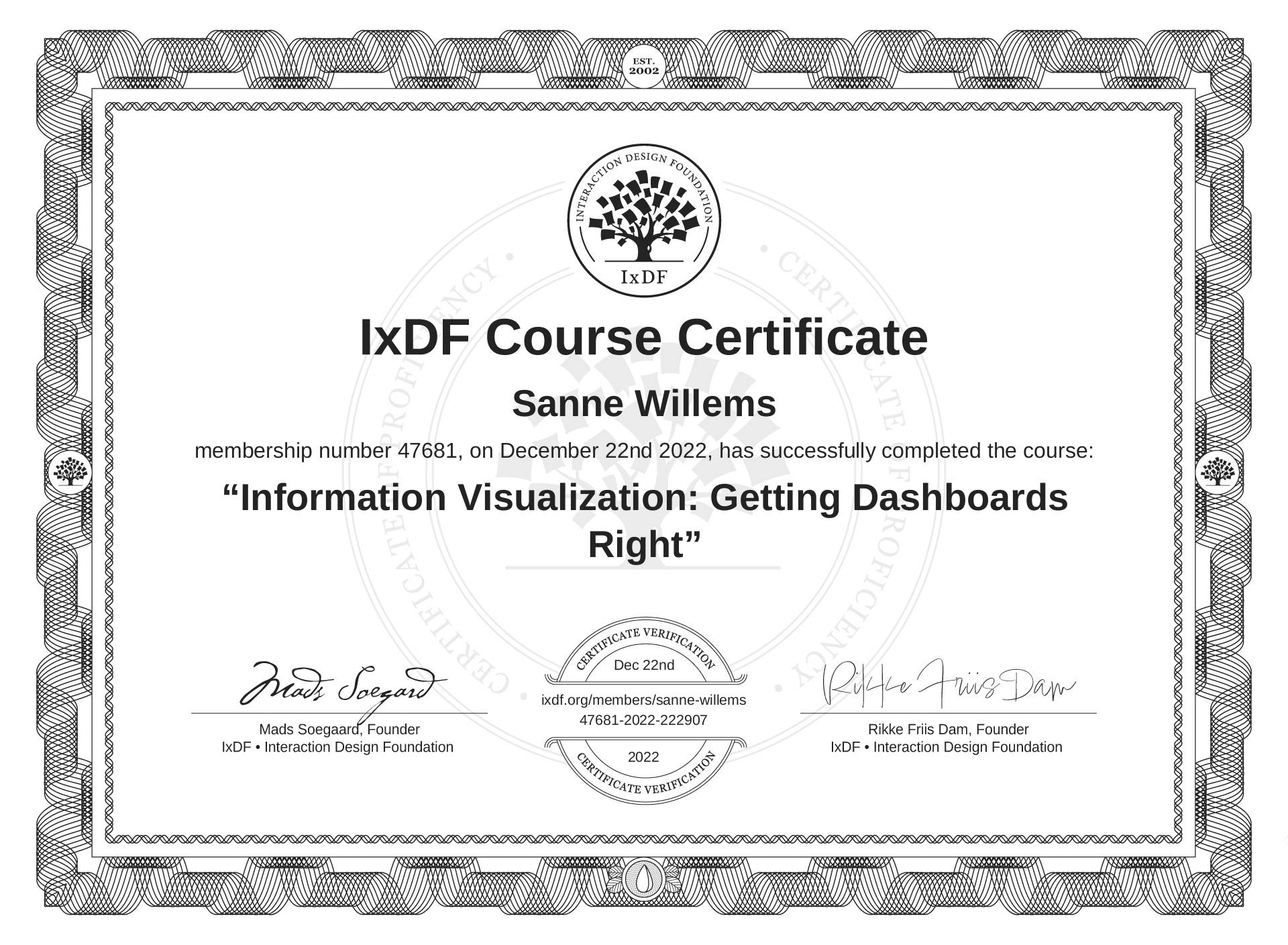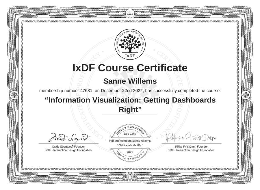 Sanne Willems's IxDF Course Certificate: Information Visualization: Getting Dashboards Right