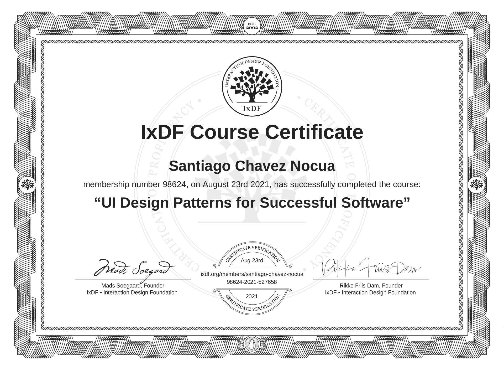 Santiago Chavez Nocua's IxDF Course Certificate: UI Design Patterns for Successful Software