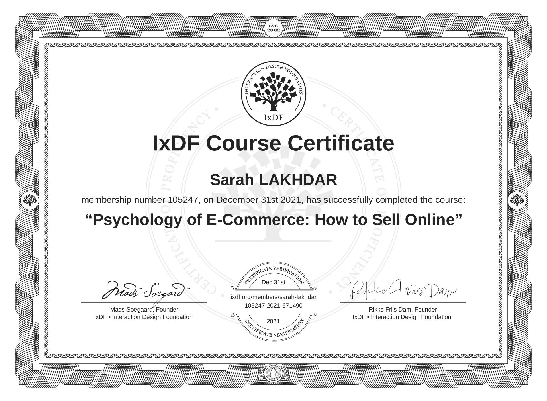 Sarah LAKHDAR's IxDF Course Certificate: Psychology of E-Commerce: How to Sell Online