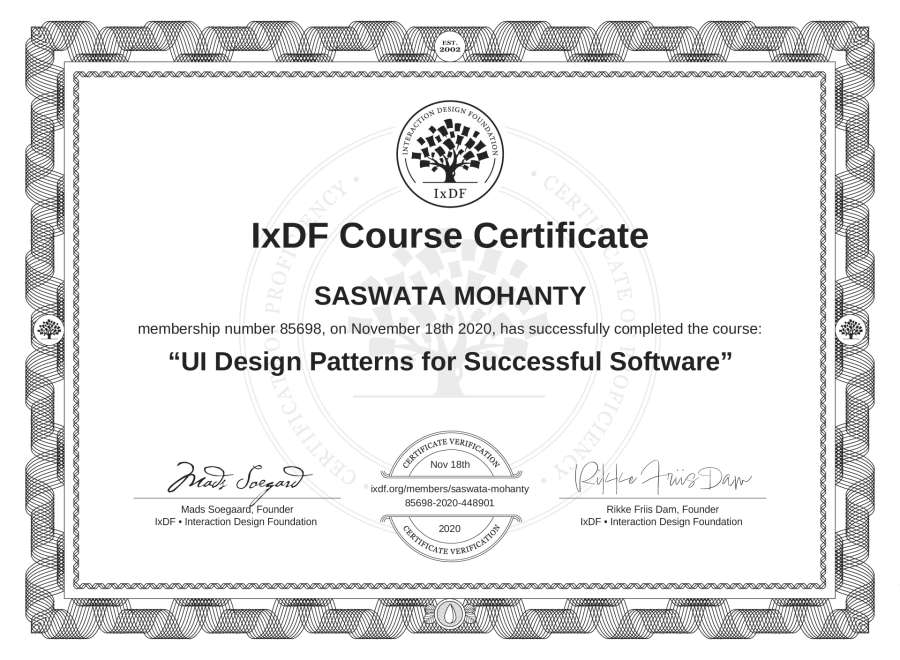SASWATA MOHANTY's IxDF Course Certificate: UI Design Patterns for Successful Software