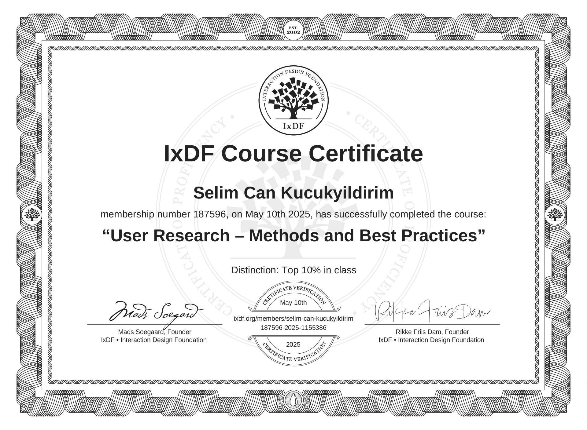 Selim Can Küçükyıldırım's IxDF Course Certificate: User Research – Methods and Best Practices