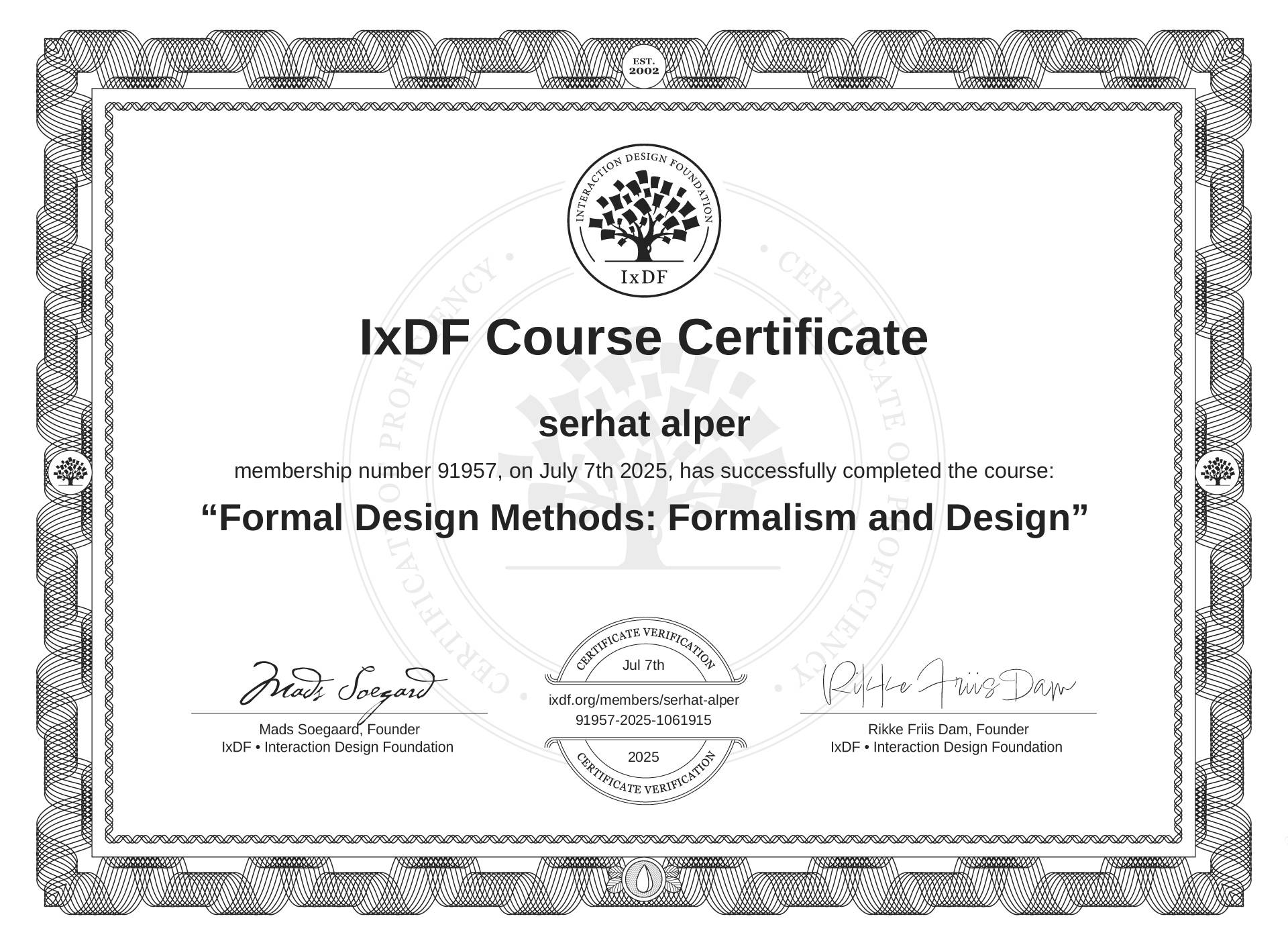 serhat alper's IxDF Course Certificate: Formal Design Methods: Formalism and Design