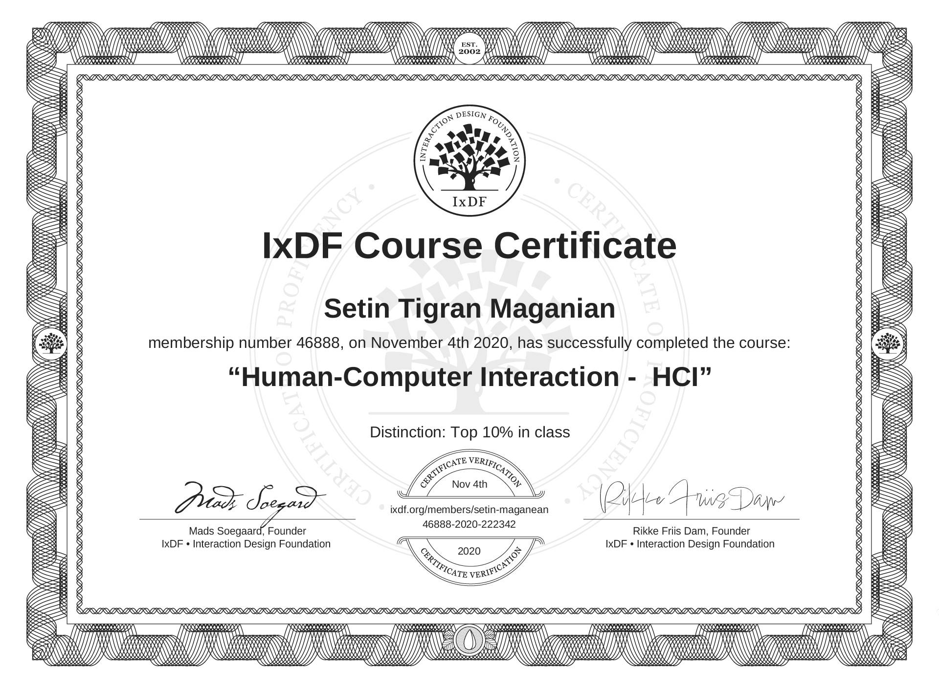 Setin Tigran Maganian's IxDF Course Certificate: Human-Computer Interaction - HCI