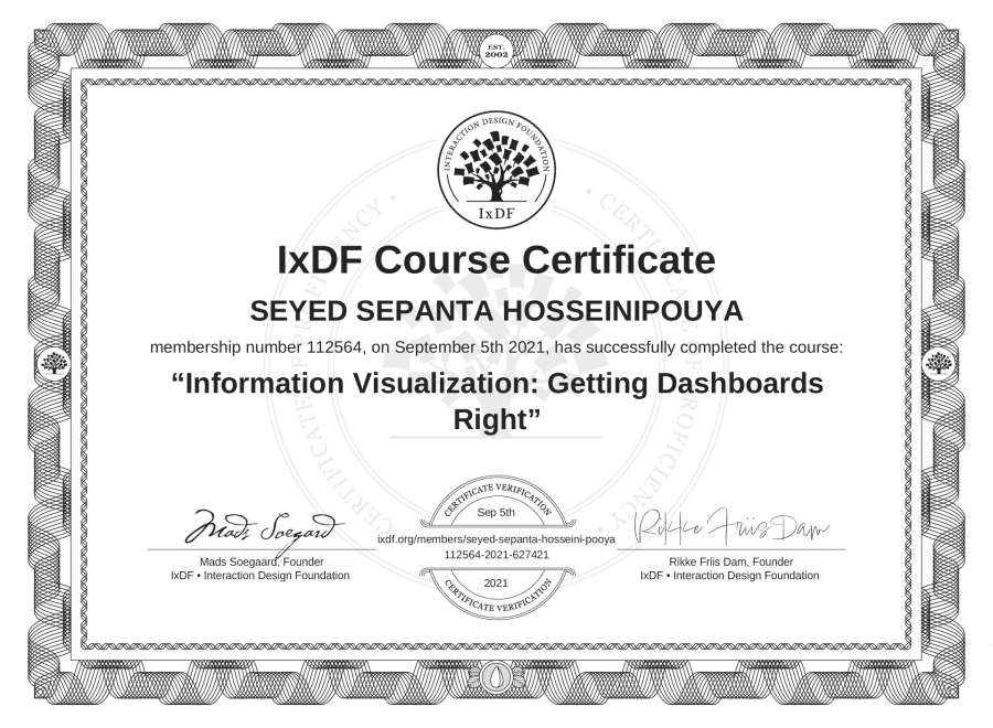 SEYED SEPANTA HOSSEINIPOUYA's IxDF Course Certificate: Information Visualization: Getting Dashboards Right