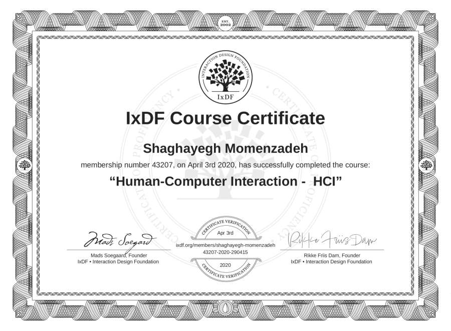 Shaghayegh Momenzadeh's IxDF Course Certificate: Human-Computer Interaction - HCI