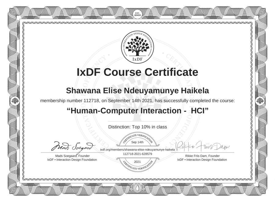 Shawana Elise Ndeuyamunye Haikela's IxDF Course Certificate: Human-Computer Interaction - HCI