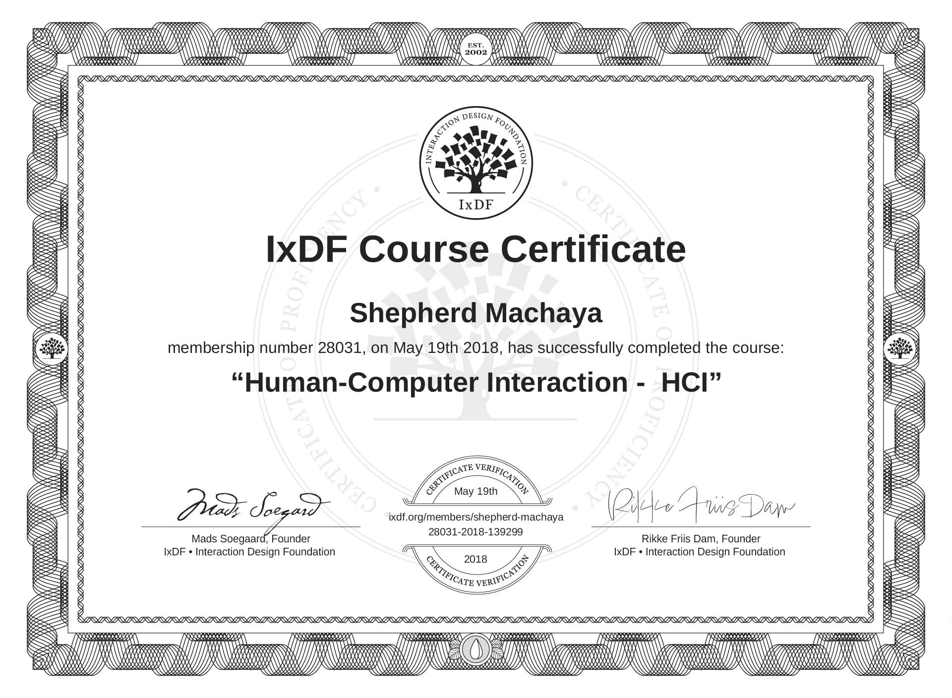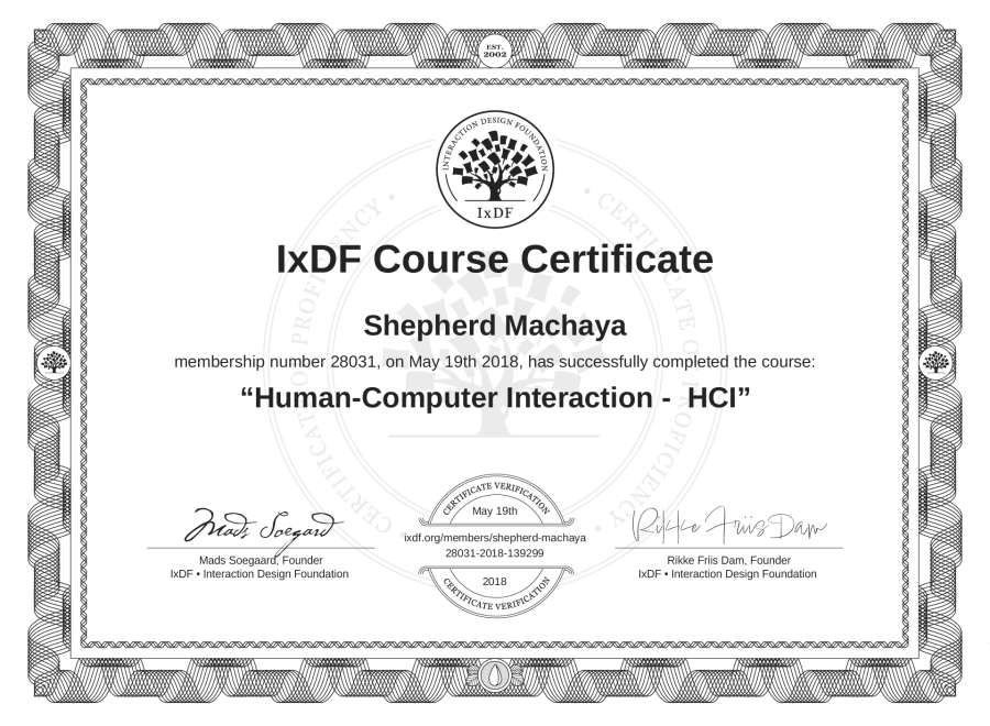 Shepherd Machaya's IxDF Course Certificate: Human-Computer Interaction - HCI
