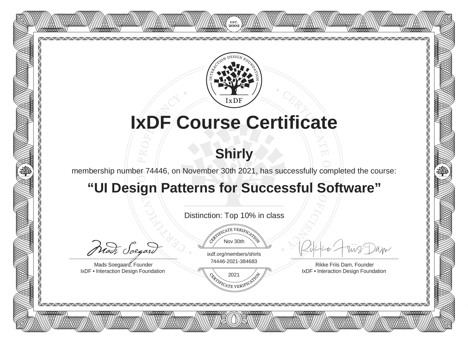 Shirly's IxDF Course Certificate: UI Design Patterns for Successful Software