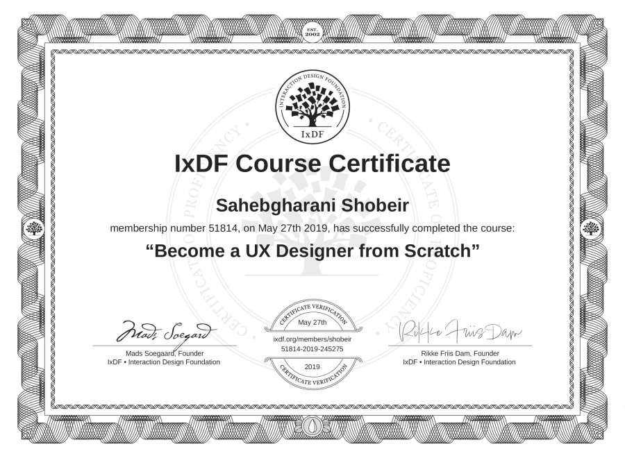 Sahebgharani Shobeir's IxDF Course Certificate: Become a UX Designer from Scratch