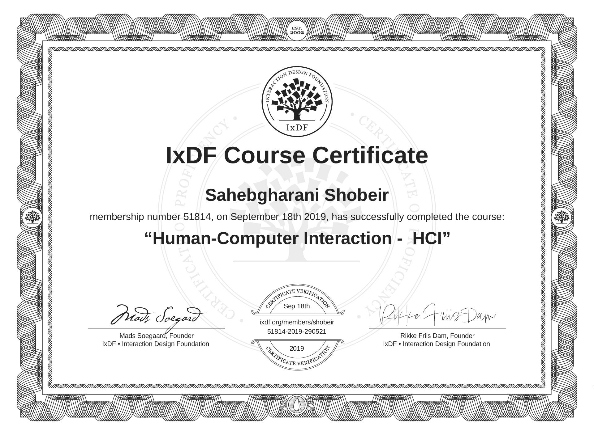 Sahebgharani Shobeir's IxDF Course Certificate: Human-Computer Interaction - HCI