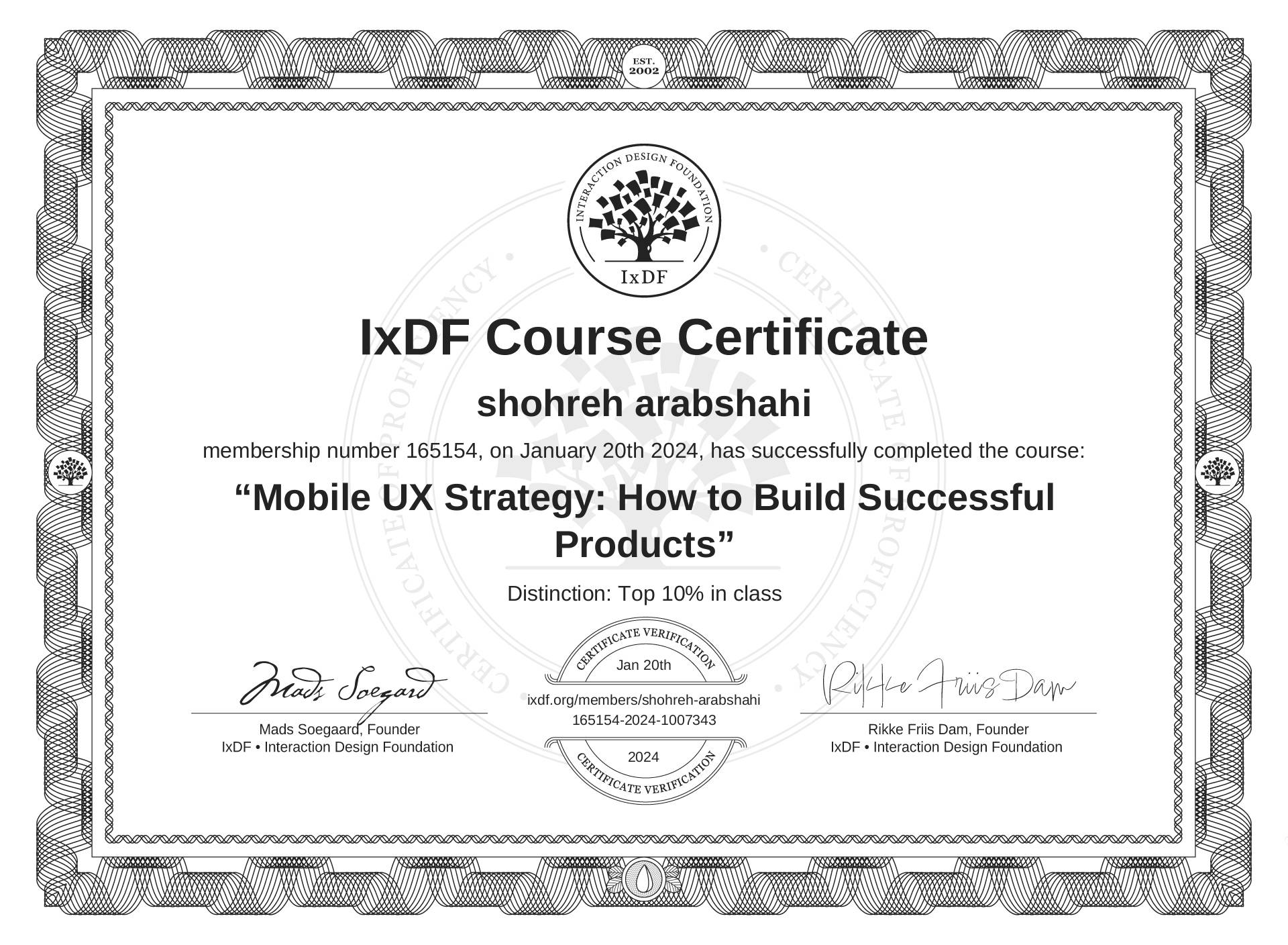 shohreh arabshahi's IxDF Course Certificate: Mobile UX Strategy: How to Build Successful Products
