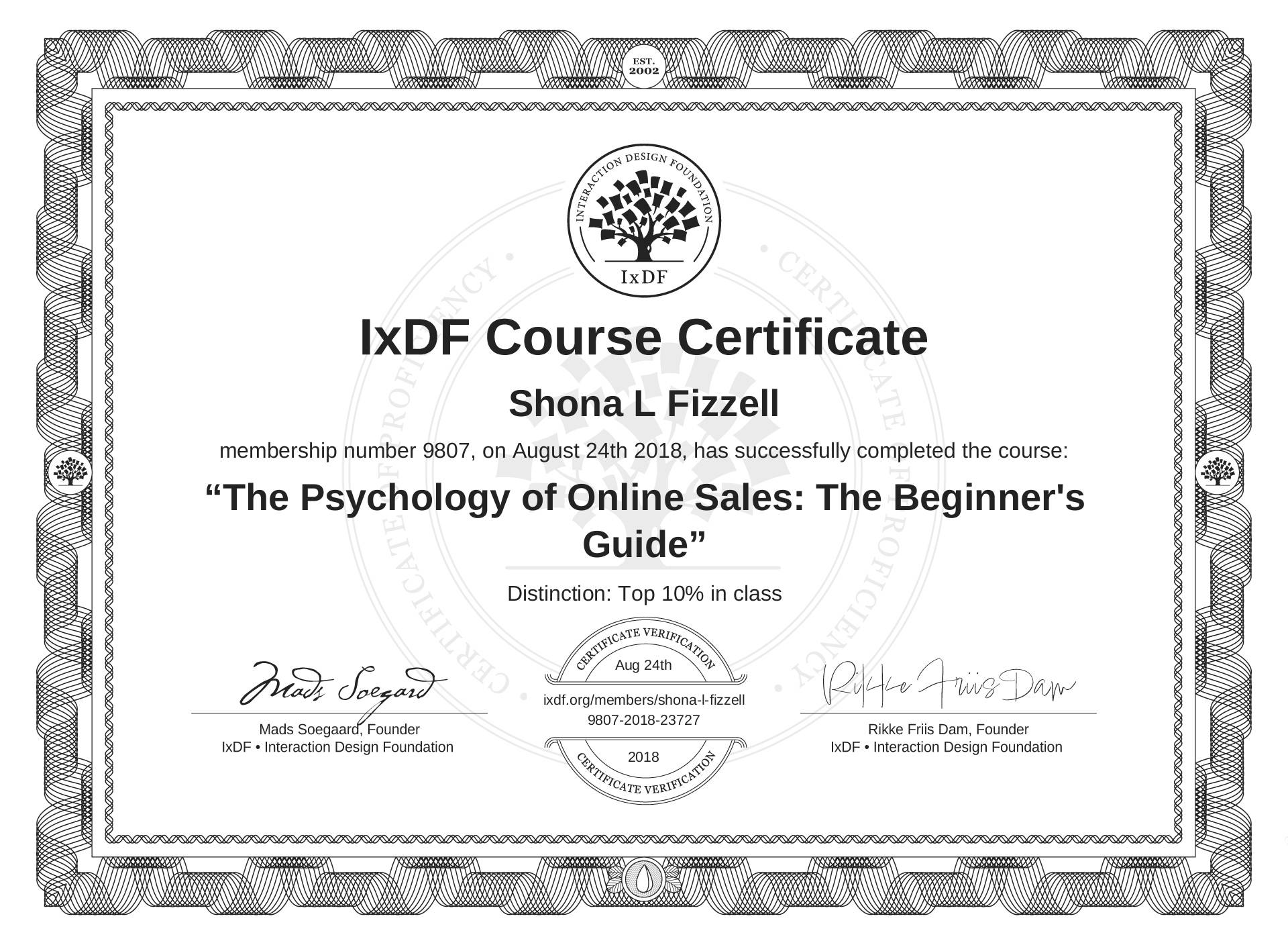 Shona L Fizzell's IxDF Course Certificate: The Psychology of Online Sales: The Beginner's Guide