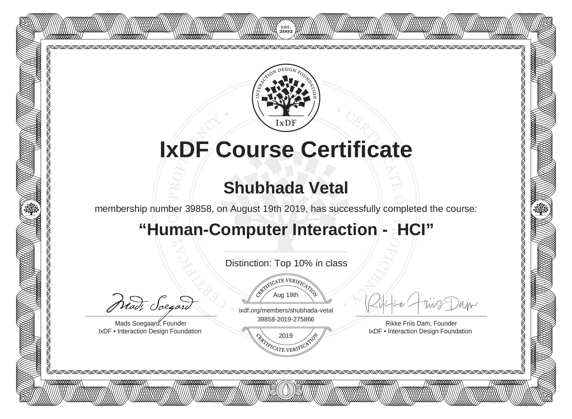 Shubhada Vetal's IxDF Course Certificate: Human-Computer Interaction - HCI