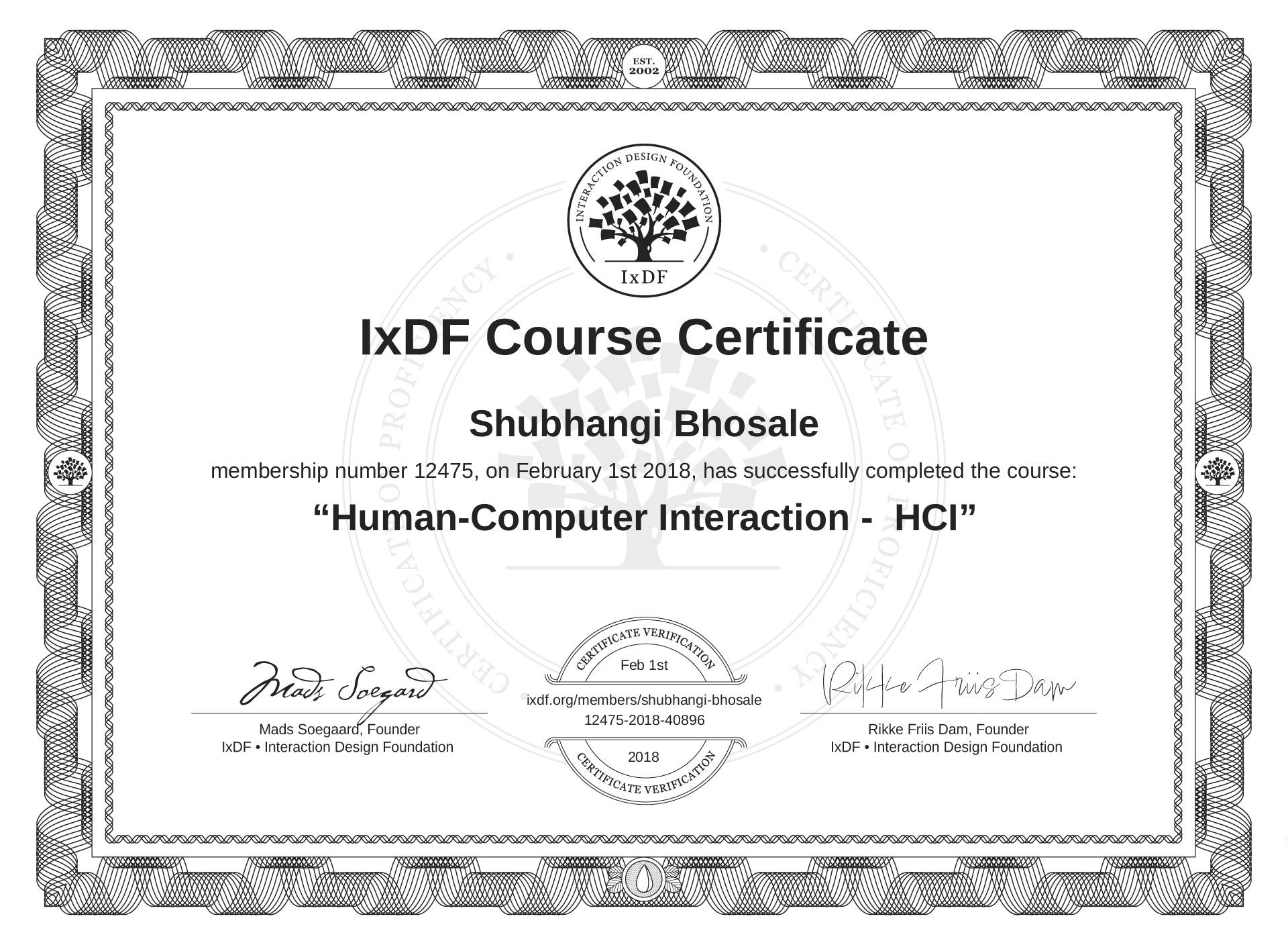 Shubhangi Bhosale's IxDF Course Certificate: Human-Computer Interaction - HCI