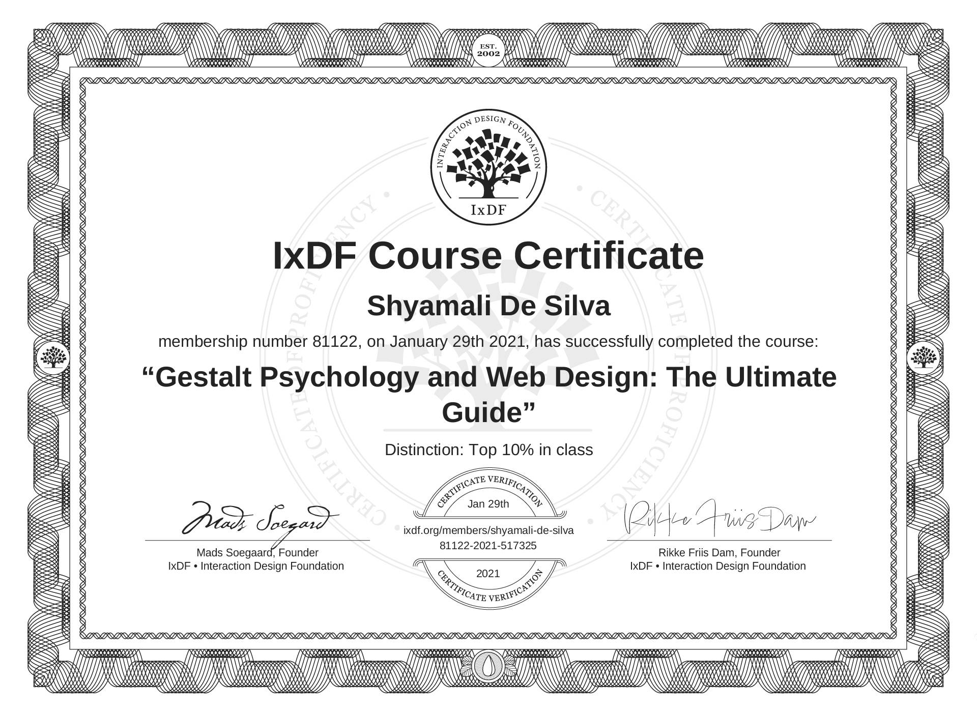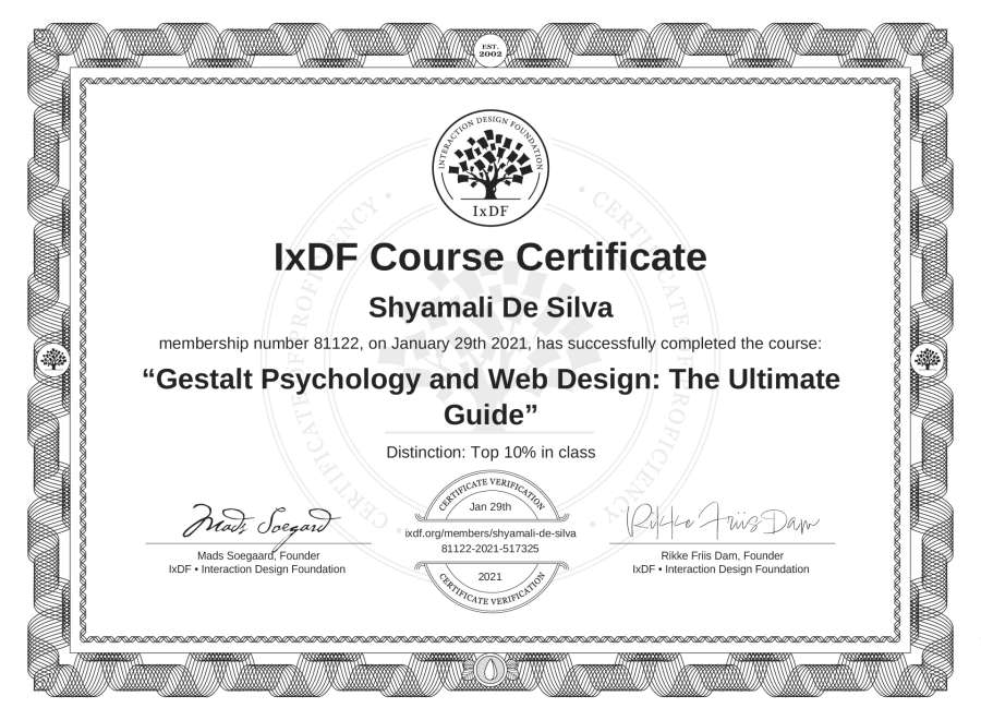 Shyamali De Silva's IxDF Course Certificate: Gestalt Psychology and Web Design: The Ultimate Guide