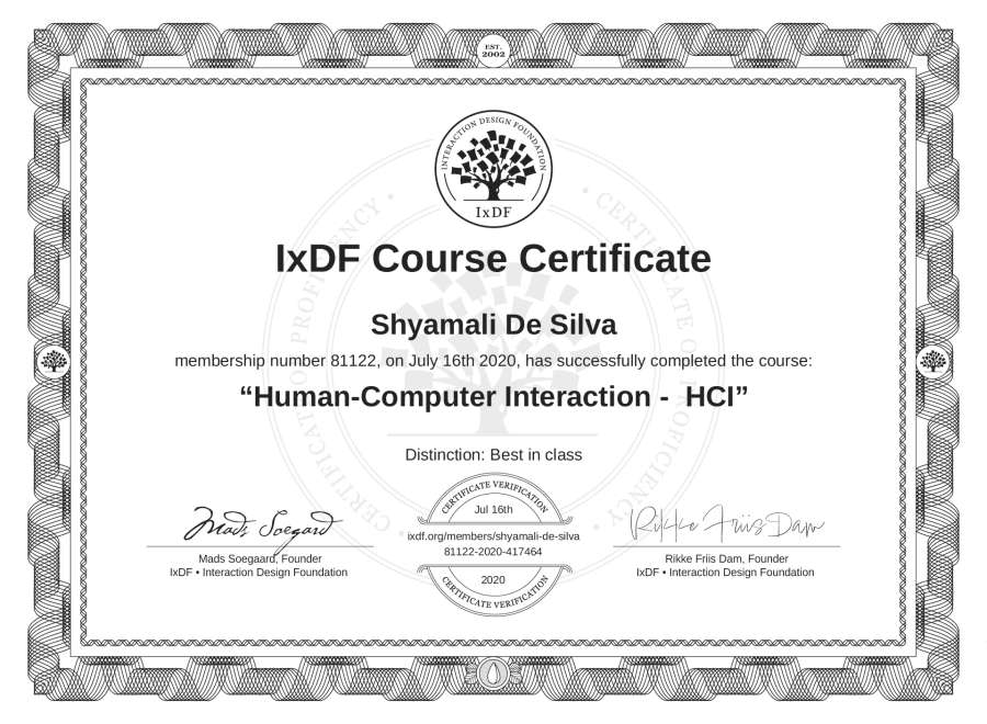 Shyamali De Silva's IxDF Course Certificate: Human-Computer Interaction - HCI