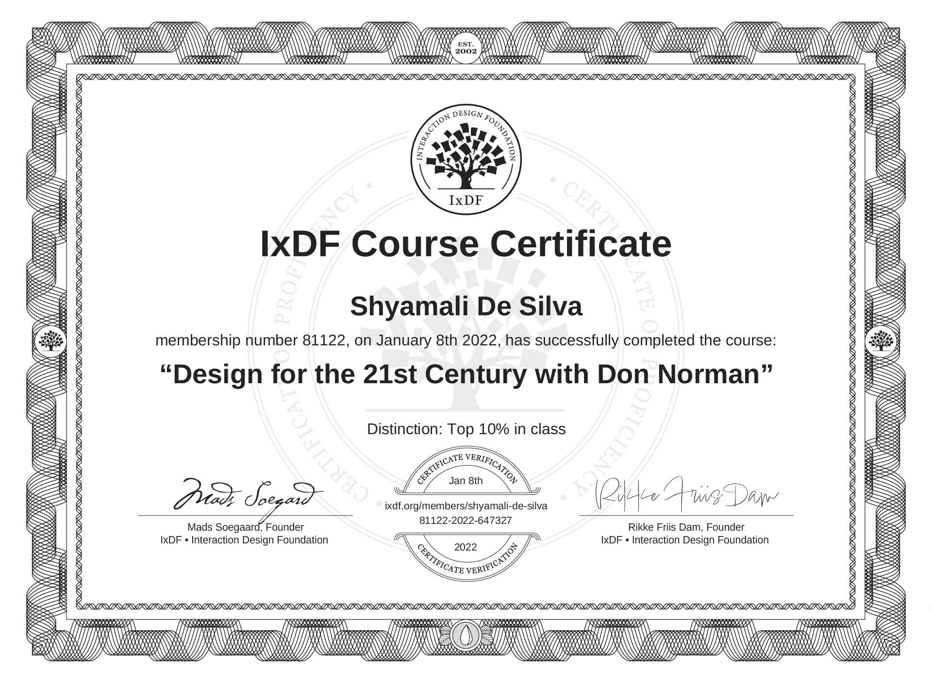 Shyamali De Silva's IxDF Course Certificate: Design for the 21st Century with Don Norman