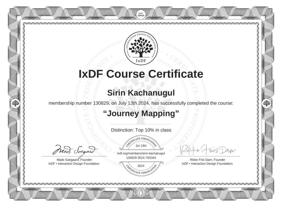 Sirin Kachanugul's IxDF Course Certificate: Journey Mapping