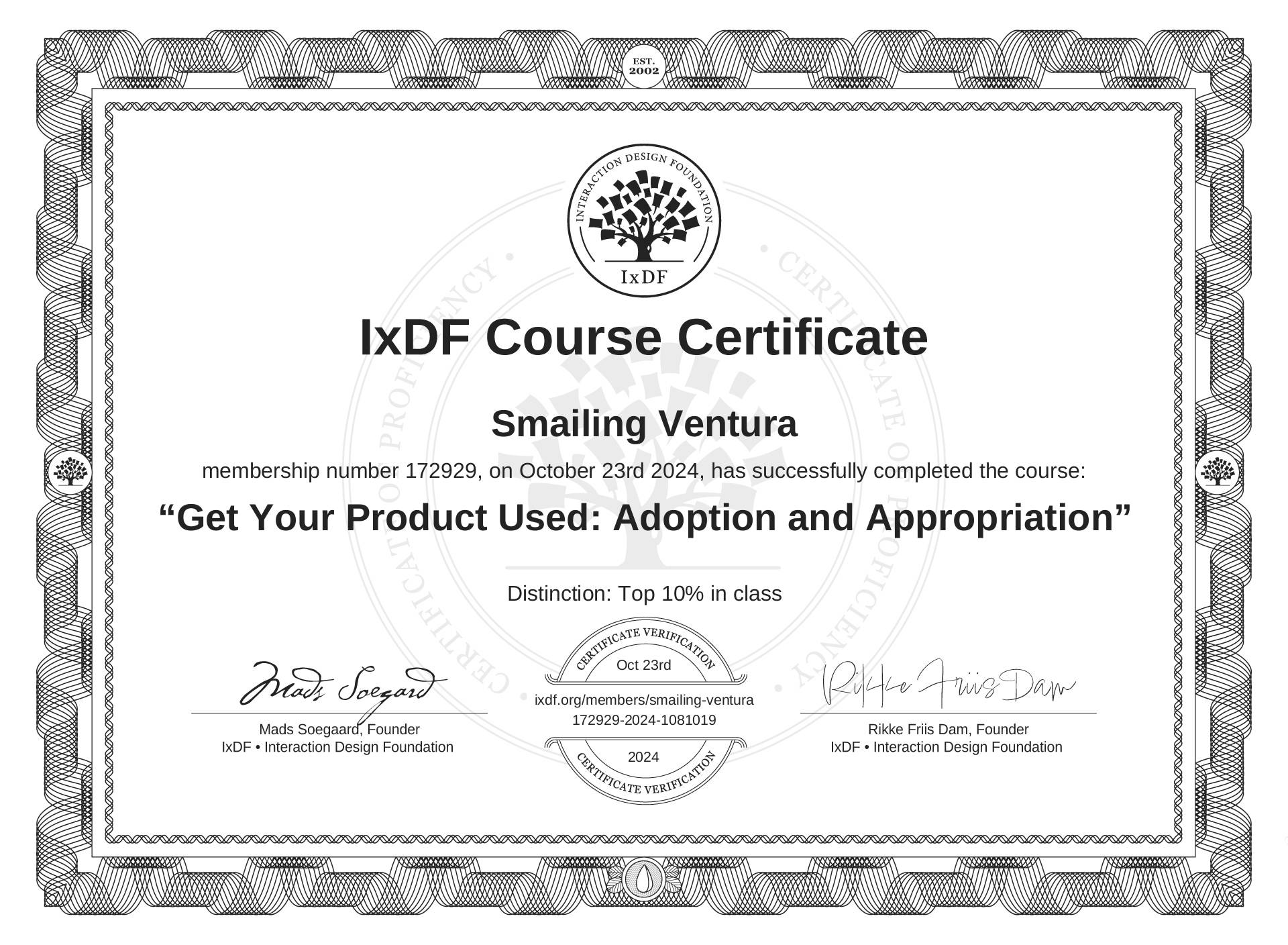 Smailing Ventura's IxDF Course Certificate: Get Your Product Used: Adoption and Appropriation