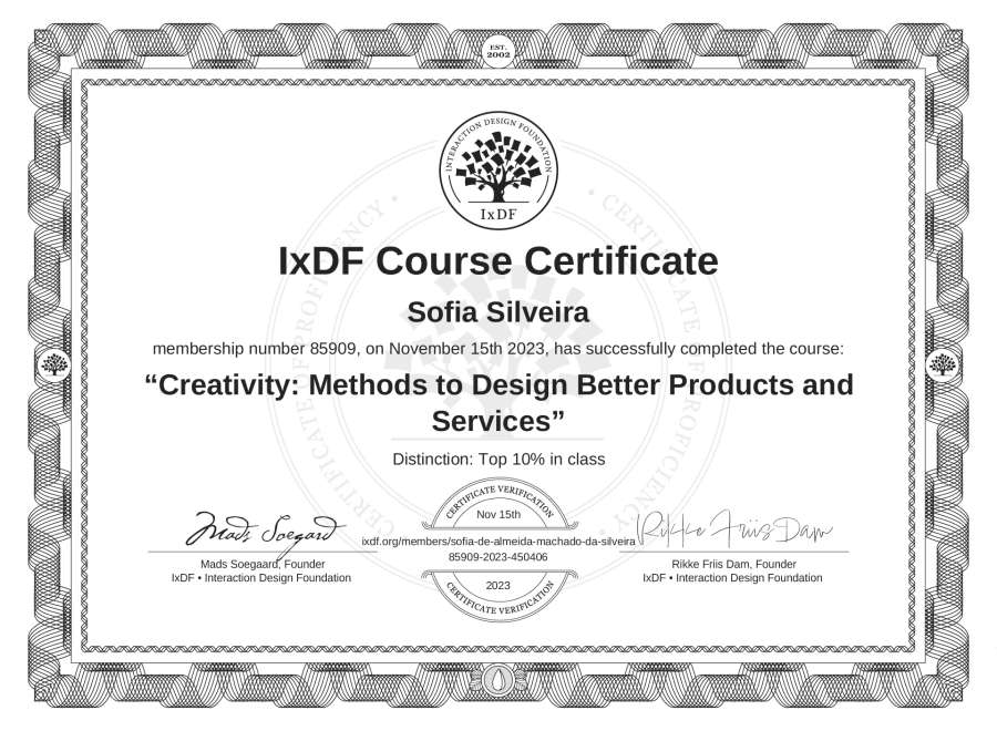 Sofia Silveira's IxDF Course Certificate: Creativity: Methods to Design Better Products and Services
