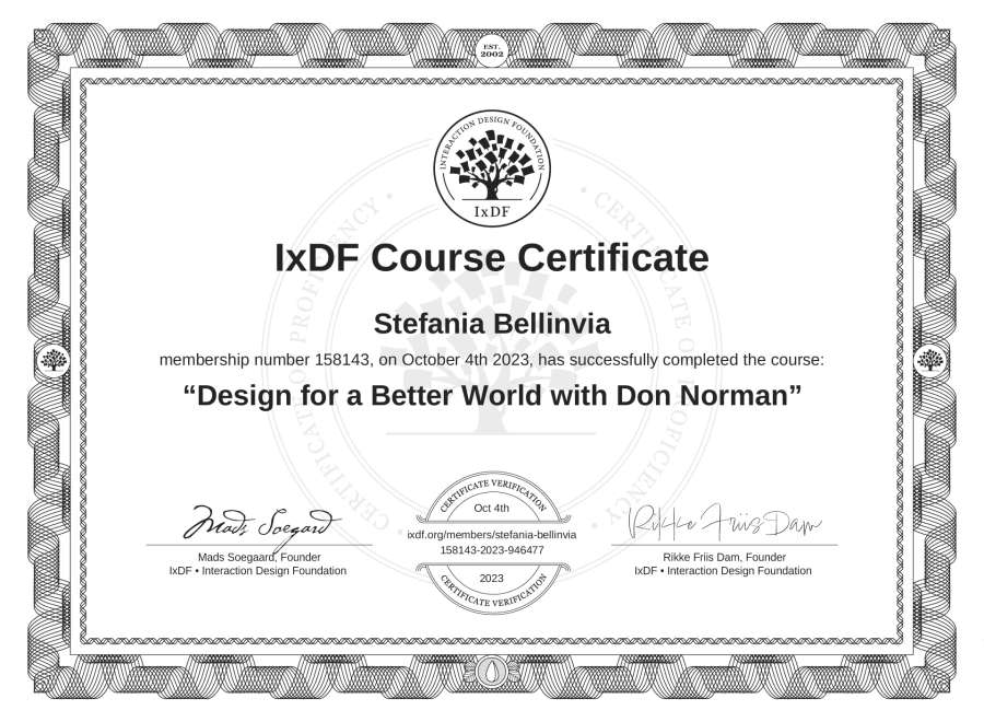 Stefania Bellinvia's IxDF Course Certificate: Design for a Better World with Don Norman