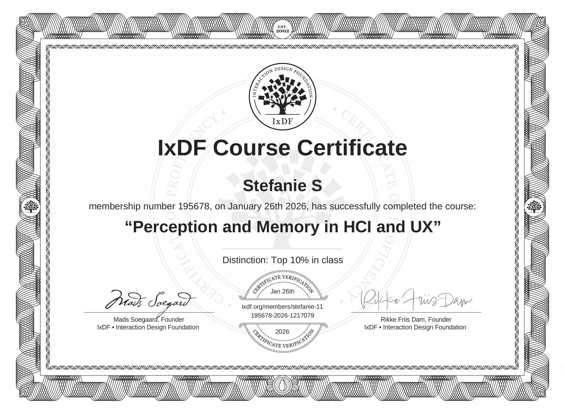Stefanie S's IxDF Course Certificate: Perception and Memory in HCI and UX