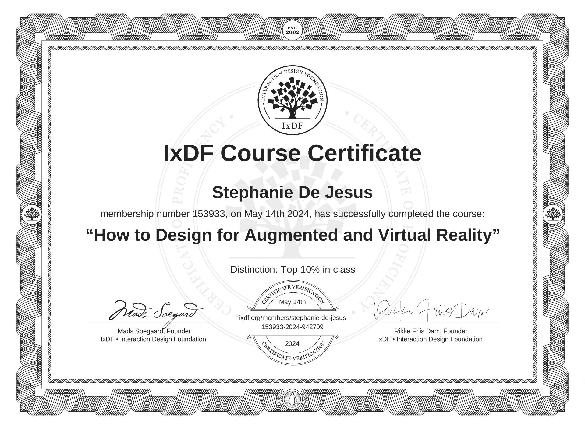 Stephanie De Jesus's IxDF Course Certificate: How to Design for Augmented and Virtual Reality