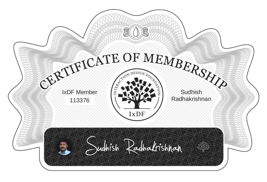 Page URL: https://www.interaction-design.org/members/sudhish-radhakrishnan/certificate/membership/mc_RGM9FMr1f