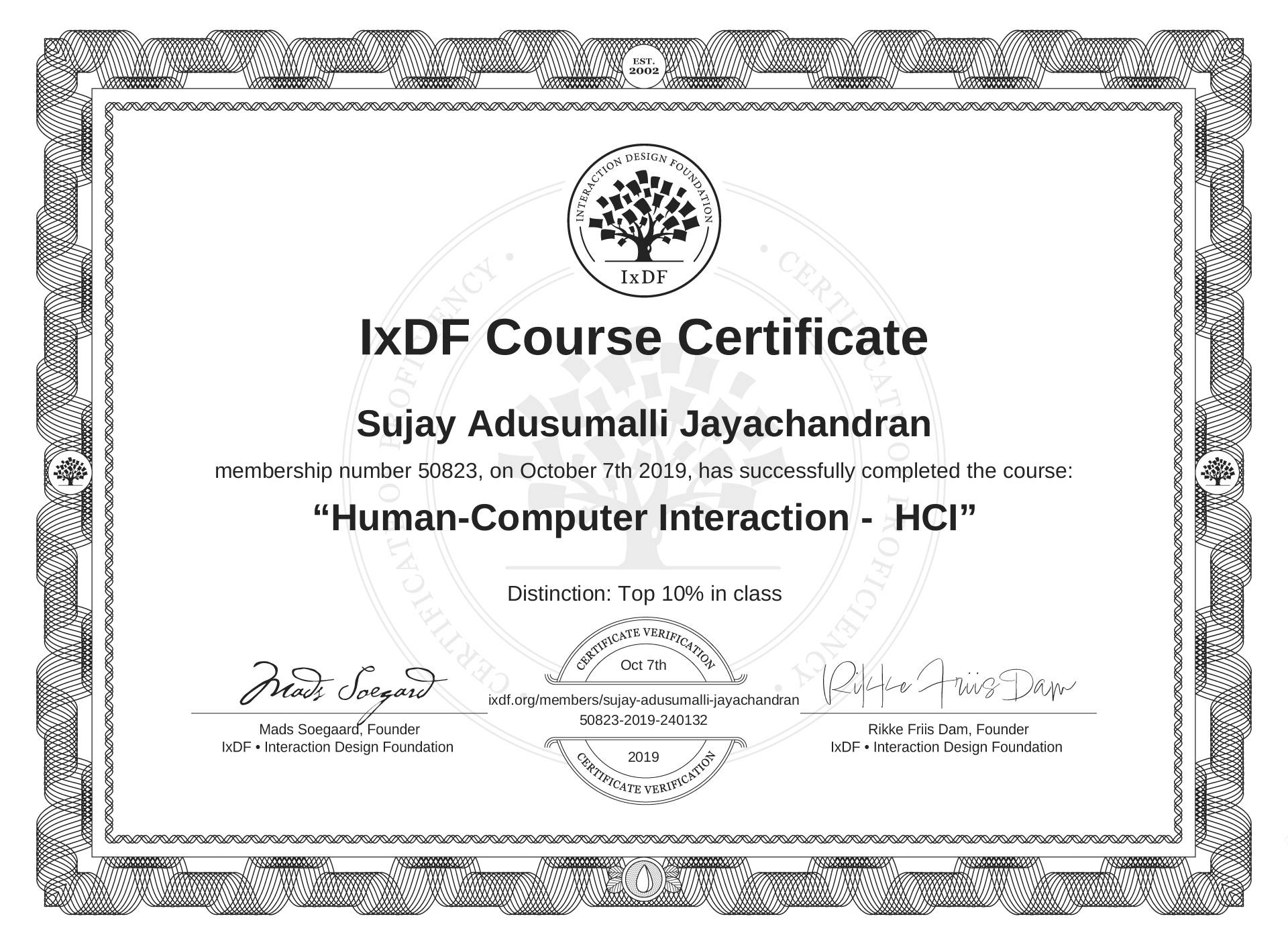 Sujay Adusumalli Jayachandran's IxDF Course Certificate: Human-Computer Interaction - HCI