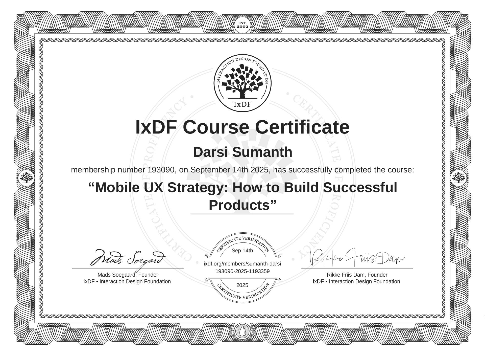 Darsi Sumanth's IxDF Course Certificate: Mobile UX Strategy: How to Build Successful Products