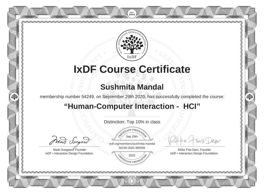 Sushmita Mandal's IxDF Course Certificate: Human-Computer Interaction - HCI