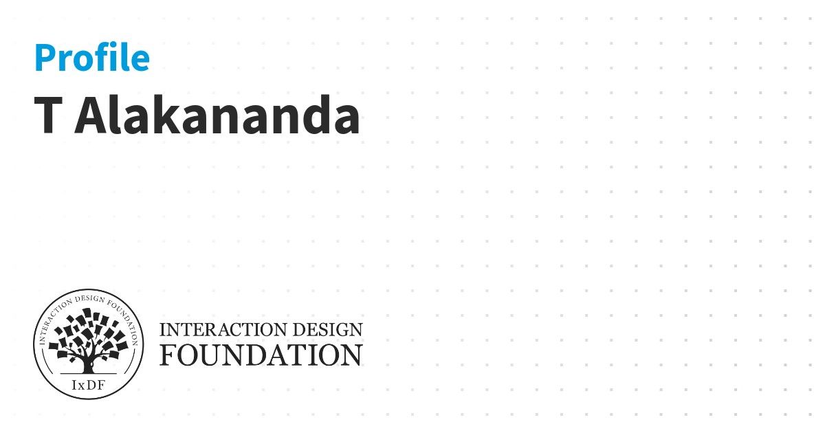 IxDF Course Certificates are awarded to T Alakananda in formal recognition of their coursework surpassing the rigorous benchmarks of exceptional performance established by the IxDF Educational Codex.