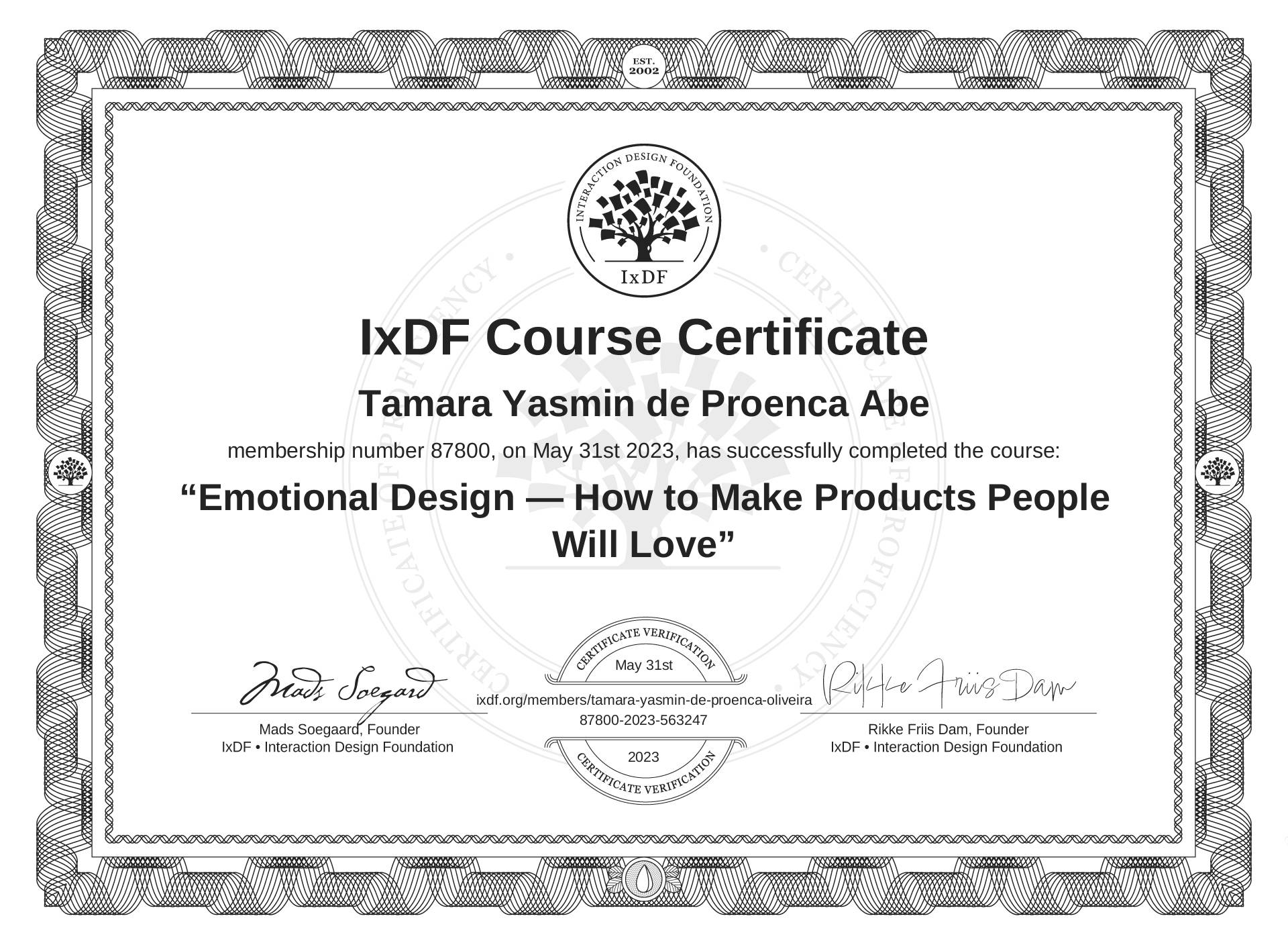 Tamara Yasmin de Proença Abe's IxDF Course Certificate: Emotional Design — How to Make Products People Will Love